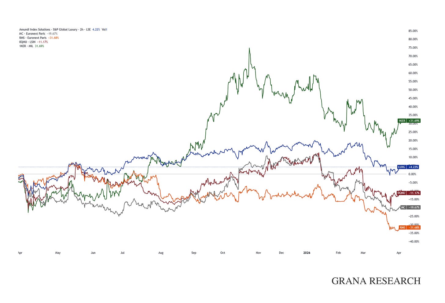 Frankly, it has long been difficult to classify LVMH Moët Hennessy unequivocally and without reservations as “hard luxury” — unlike Hermès ($RMS.FP), which relies on a narrow but highly loyal client base, tightly controls supply (going as far as legal disputes over the right not to sell its exclusive $15,000 handbags to insufficiently loyal customers), and maintains strong pricing power. While LVMH is trying to strengthen “brand connection” through ventures like bakeries, Hermès bags continue to fly off the shelves like hot cakes. According to Sotheby’s, their average resale price increased by around 35% year-on-year, while demand from collectors remains strong: sales of Birkin and Kelly bags rose by 44% in 2025 compared to 2024 and by 55% relative to 2023.