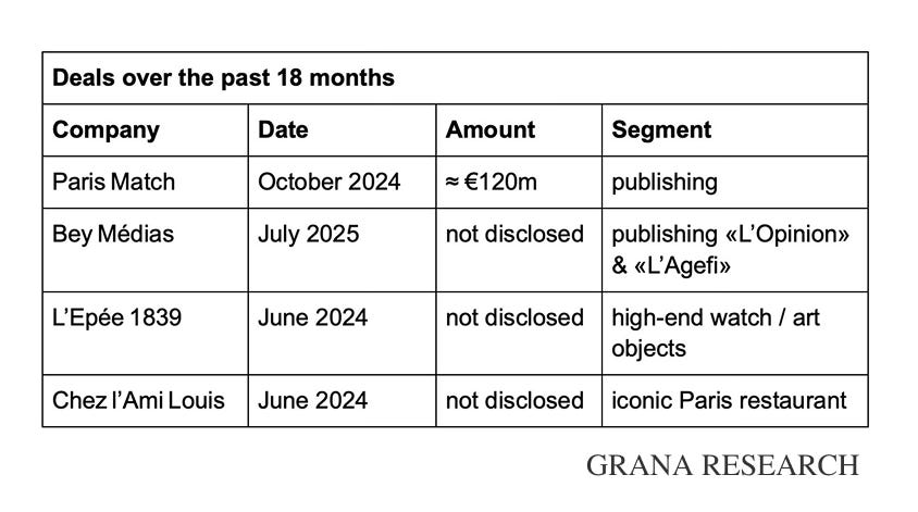 Against this backdrop, the performance of LVMH Moët Hennessy ($LVMH, $MC.FP) shares appears almost paradoxical: the largest company in the sector would seemingly be among the primary beneficiaries and grow at least in line with the market, yet over the past three years it has consistently lagged behind its peers, while also dragging down the entire thematic benchmark. One of the most common explanations, widely cited by the sell-side, is the company’s active M&A activity, which, among other factors, contributes to an increased “conglomerate discount.”